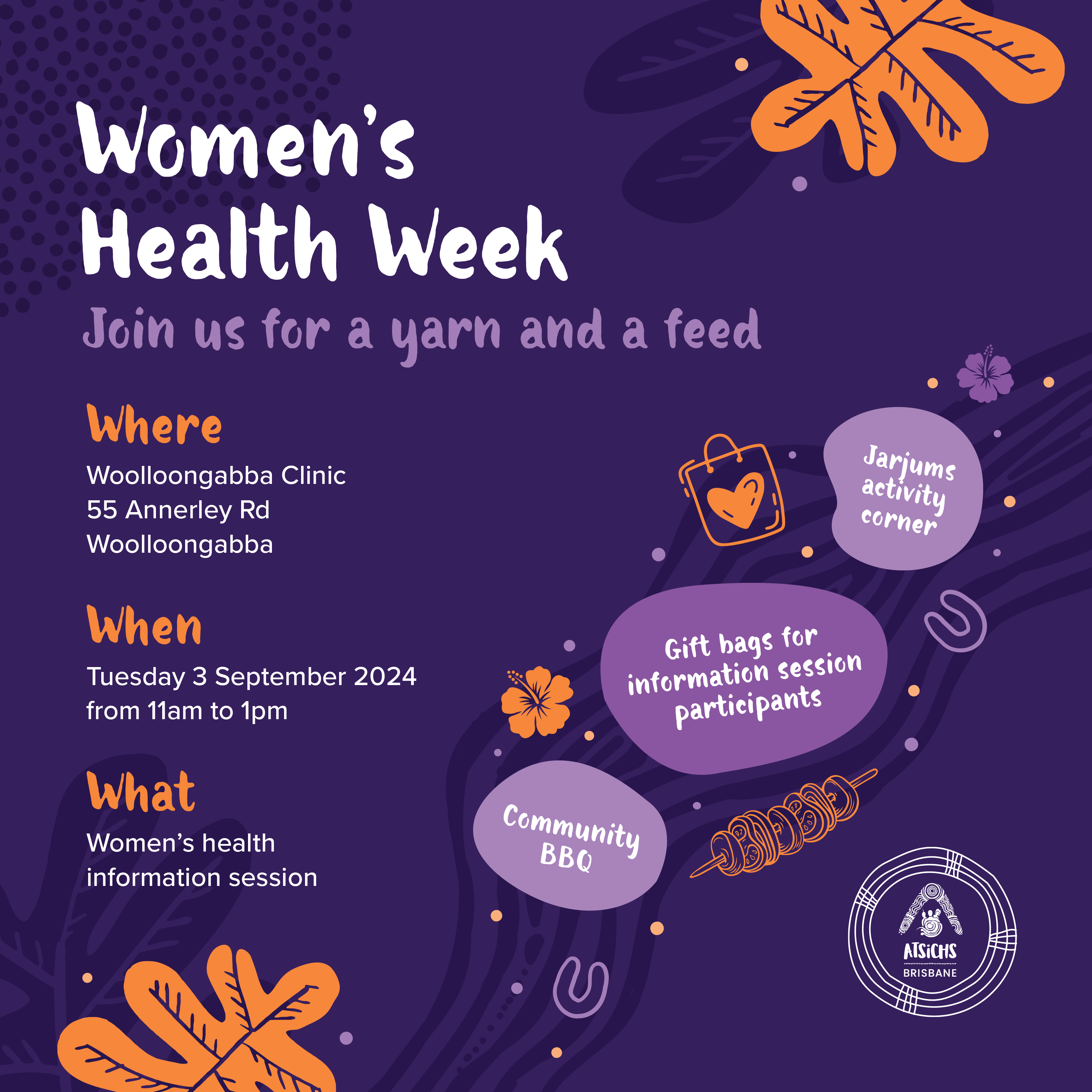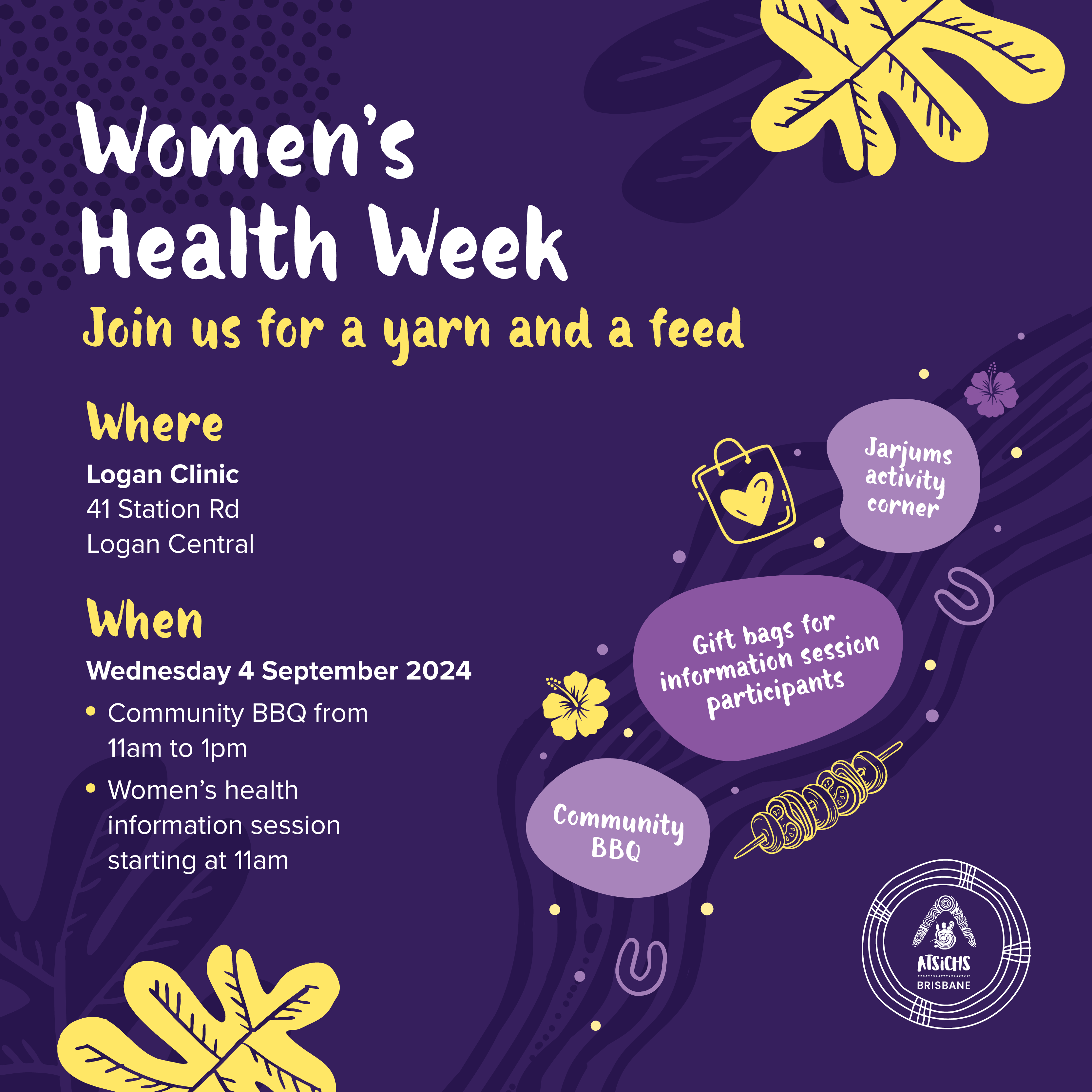 To celebrate Women’s Health Week, we are holding two events. Join us for a yarn and a feed in Woolloongabba on 3 September or Logan on 4 September.